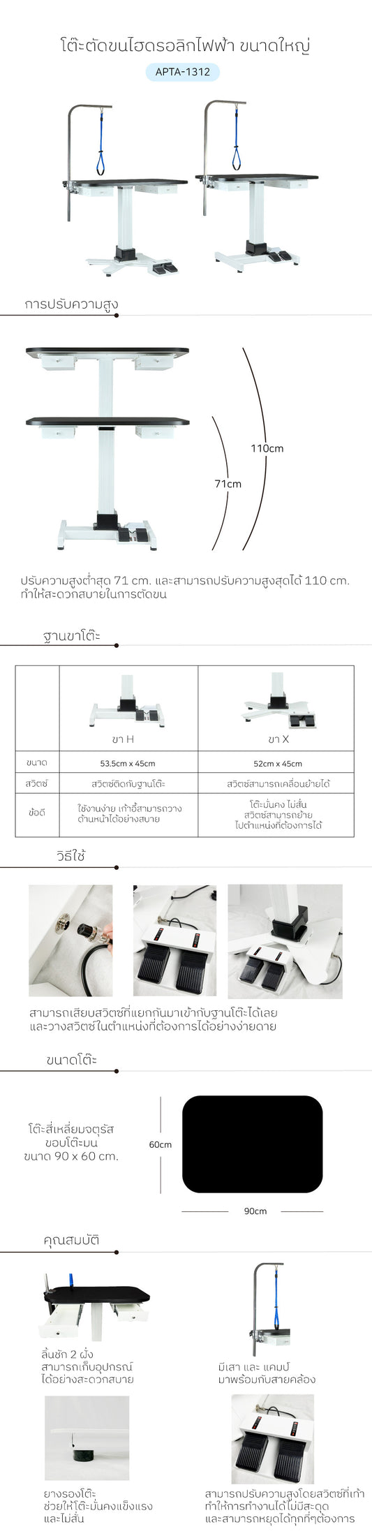 โต๊ะตัดขนไฮดรอลิกไฟฟ้าเกาหลี A-Pet APTA 1312